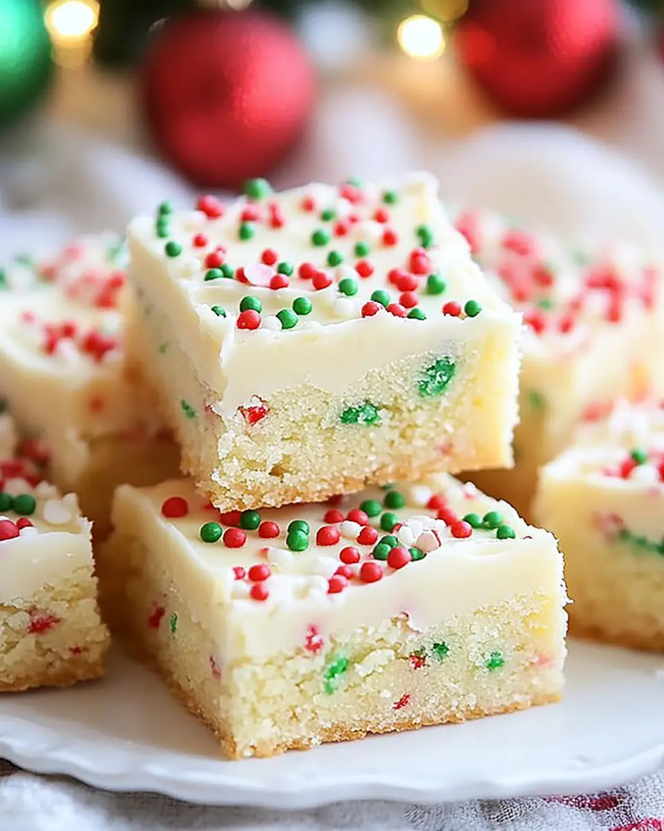 With just a handful of ingredients and straightforward instructions, you can whip up a batch of these Christmas Sugar Cookie Bars in no time. Imagine the smiles on your friends’ faces as they bite into these soft, frosted delights topped with colorful sprinkles. Not only do they taste delicious, but they also look beautiful on any dessert table. So, let’s dive in and create some holiday magic with this easy recipe!