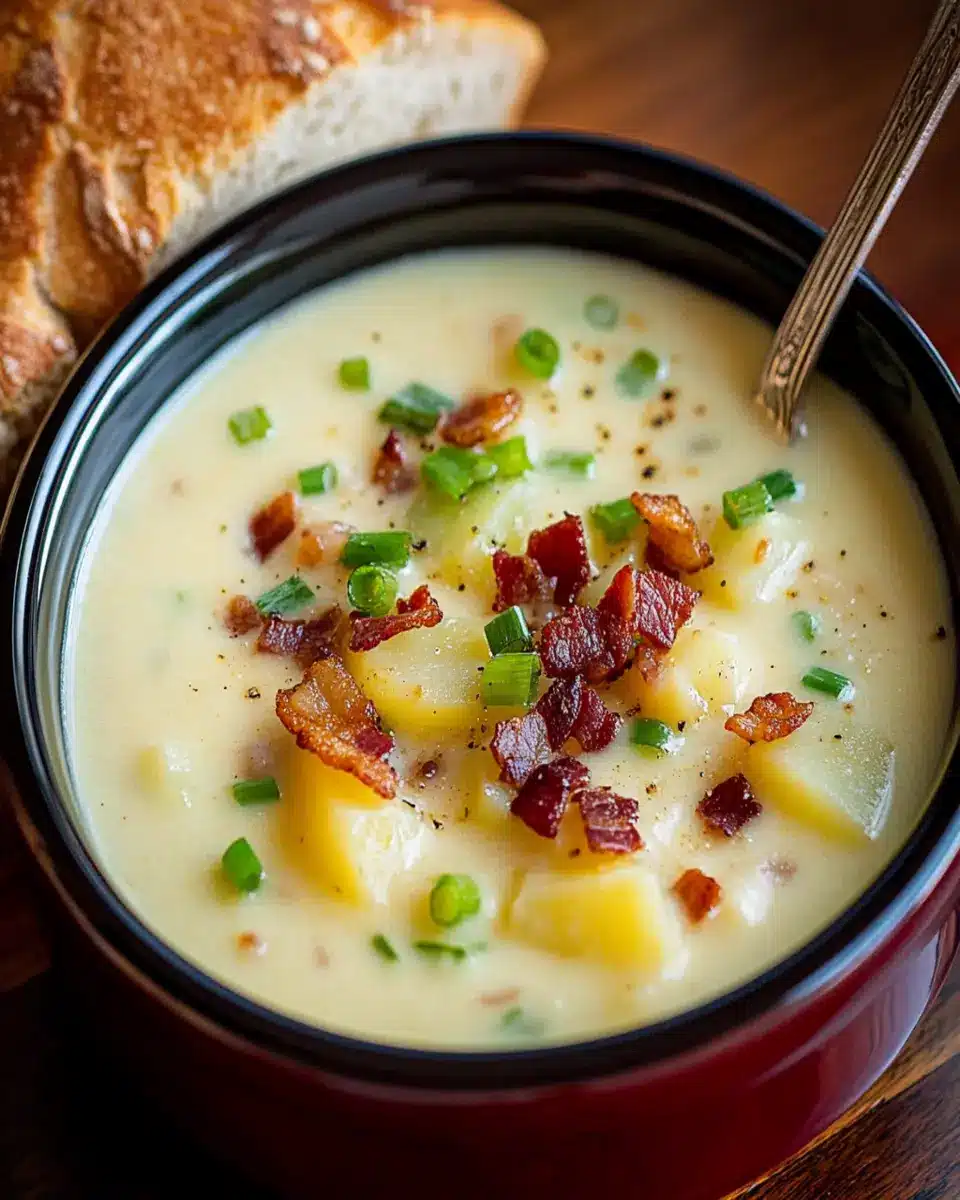 In conclusion, the Crockpot Potato Soup is a delightful and effortless way to enjoy a comforting meal. With its creamy texture and rich flavors, it’s perfect for busy young professionals or anyone looking to savor homemade goodness without the fuss. Whether served on a chilly evening or shared with friends, this recipe is sure to become a staple in your kitchen. Don’t forget to cook, save, or share this recipe and enjoy the warmth and comfort it brings!