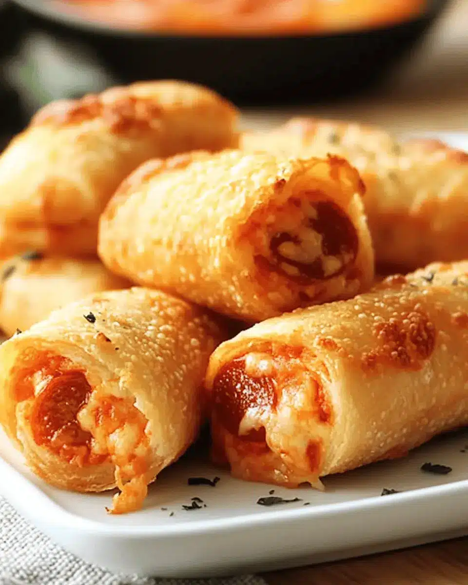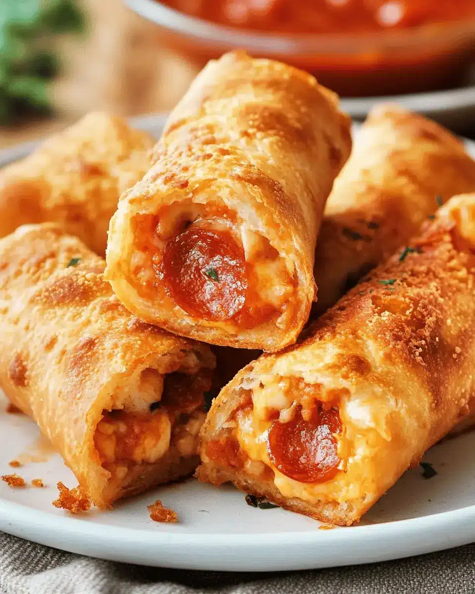 Delicious high-protein pizza rolls filled with pepperoni and cheese, perfect for a quick snack or a meal.