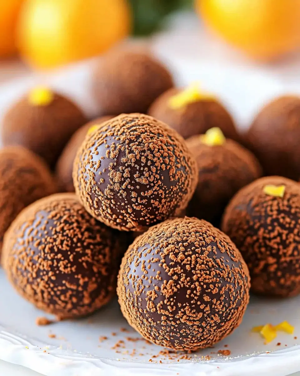Delicious and festive chocolate truffles infused with orange flavor, perfect for Christmas treats.