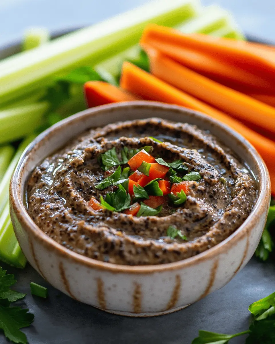 In summary, the Keto Black Garlic Mushroom Spread is a delightful blend of flavors and textures that makes for a perfect low-carb snack or appetizer. Its creamy consistency and rich taste can elevate any meal, whether you’re enjoying it with low-carb crackers or using it as a topping for grilled meats and vegetables. Plus, with its simple preparation time of just 25 minutes, it fits seamlessly into the busy lifestyles of young professionals and homemade-food lovers alike.