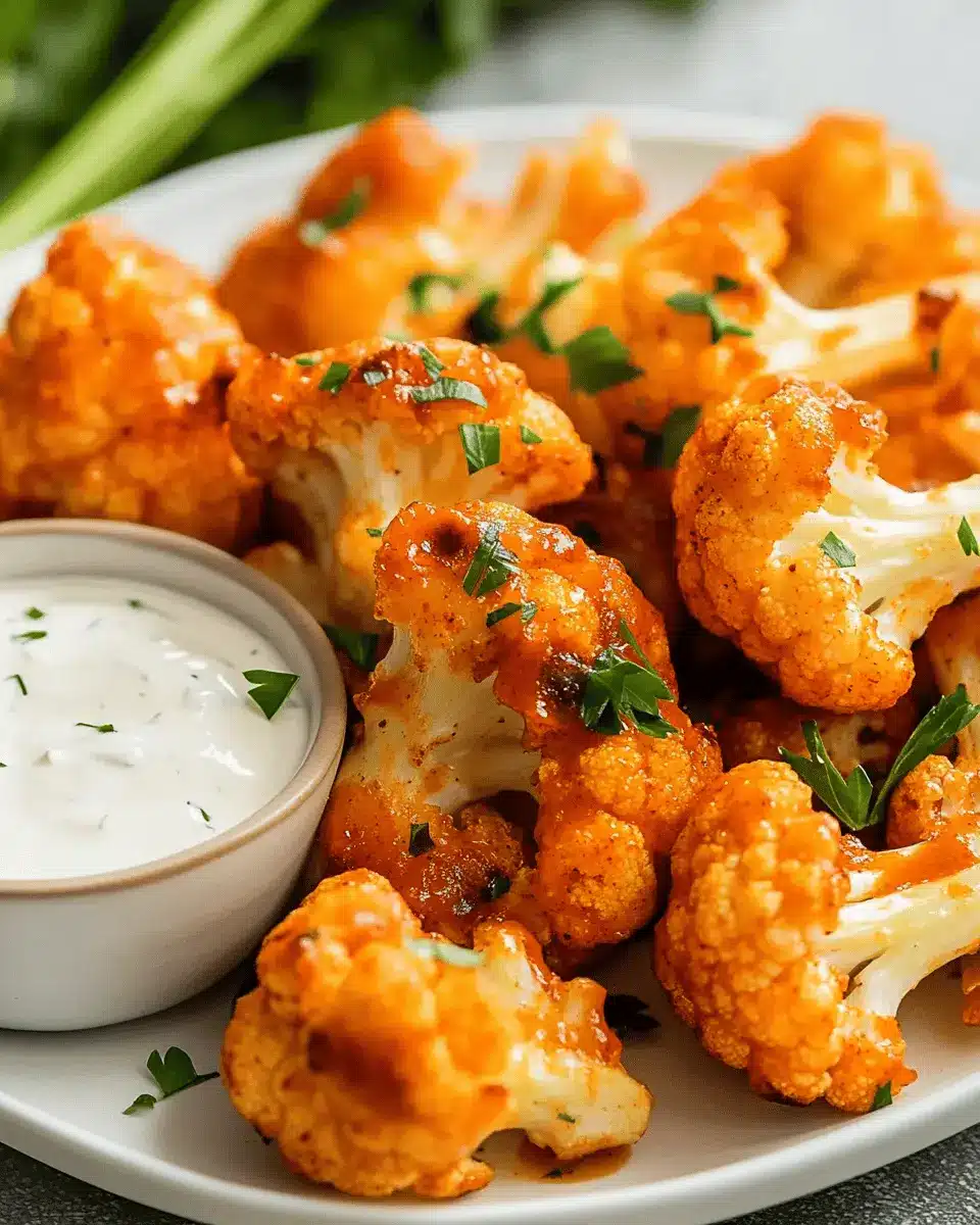The buffalo sauce is what brings the heat and tang to this dish. With its bold flavors, it elevates the cauliflower, making every bite exciting and rich in flavor.