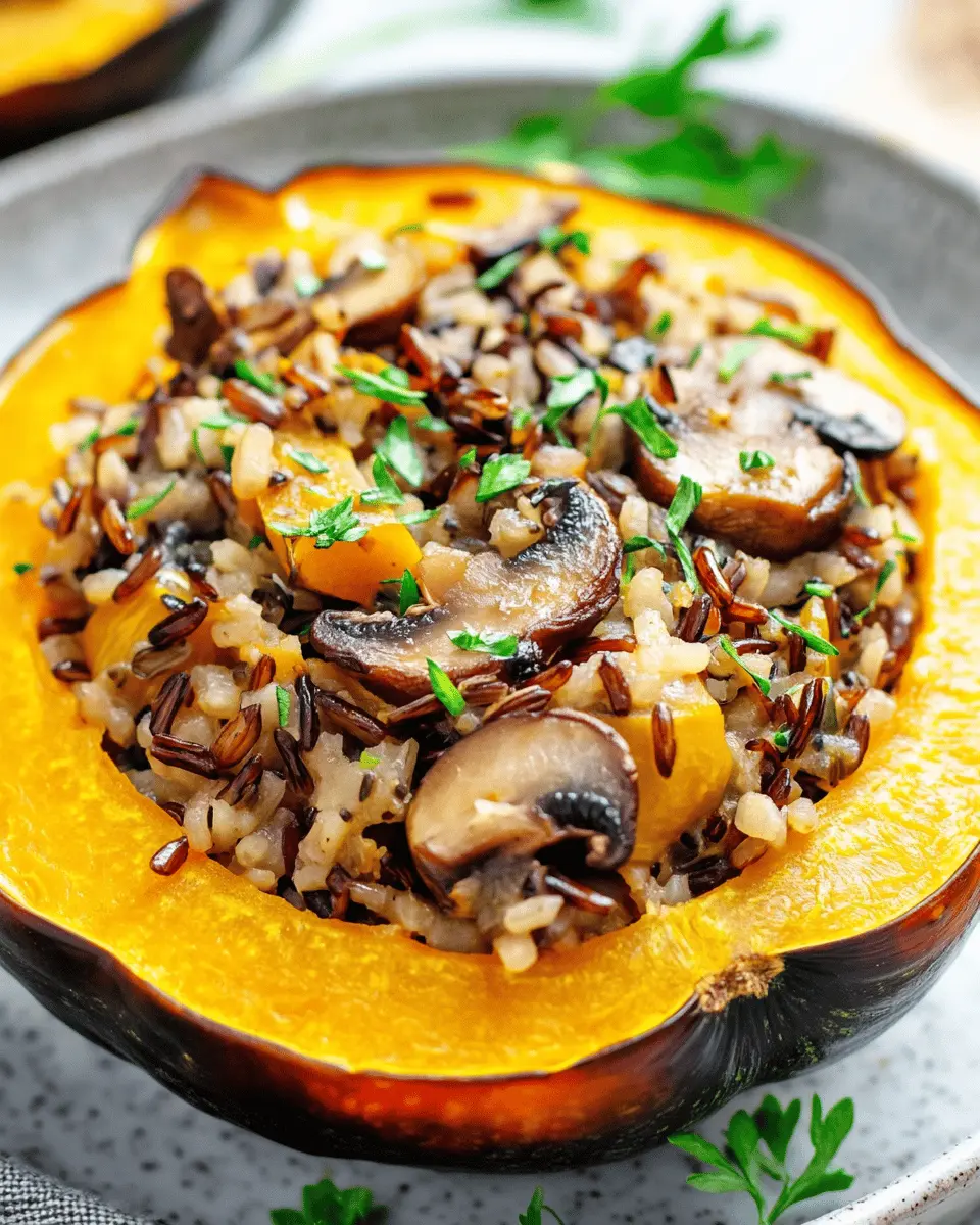 Each serving of Mushroom & Wild Rice Stuffed Acorn Squash is not only delicious but also packed with nutrients. This dish combines wholesome ingredients that contribute to a balanced meal, making it a perfect choice for health-conscious eaters.