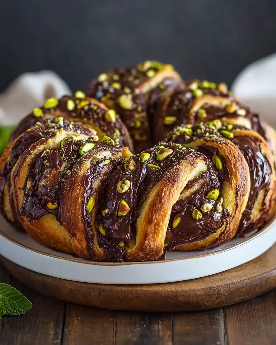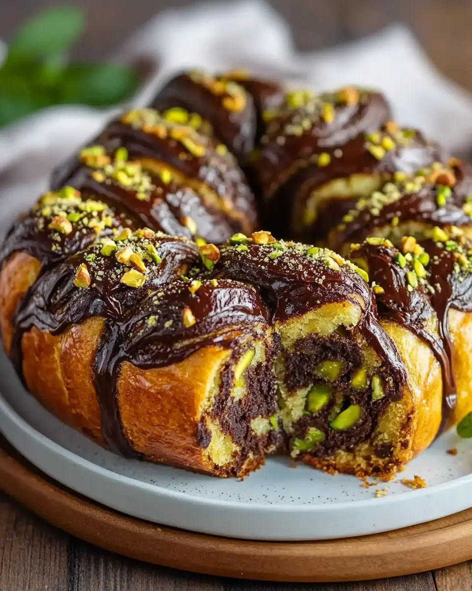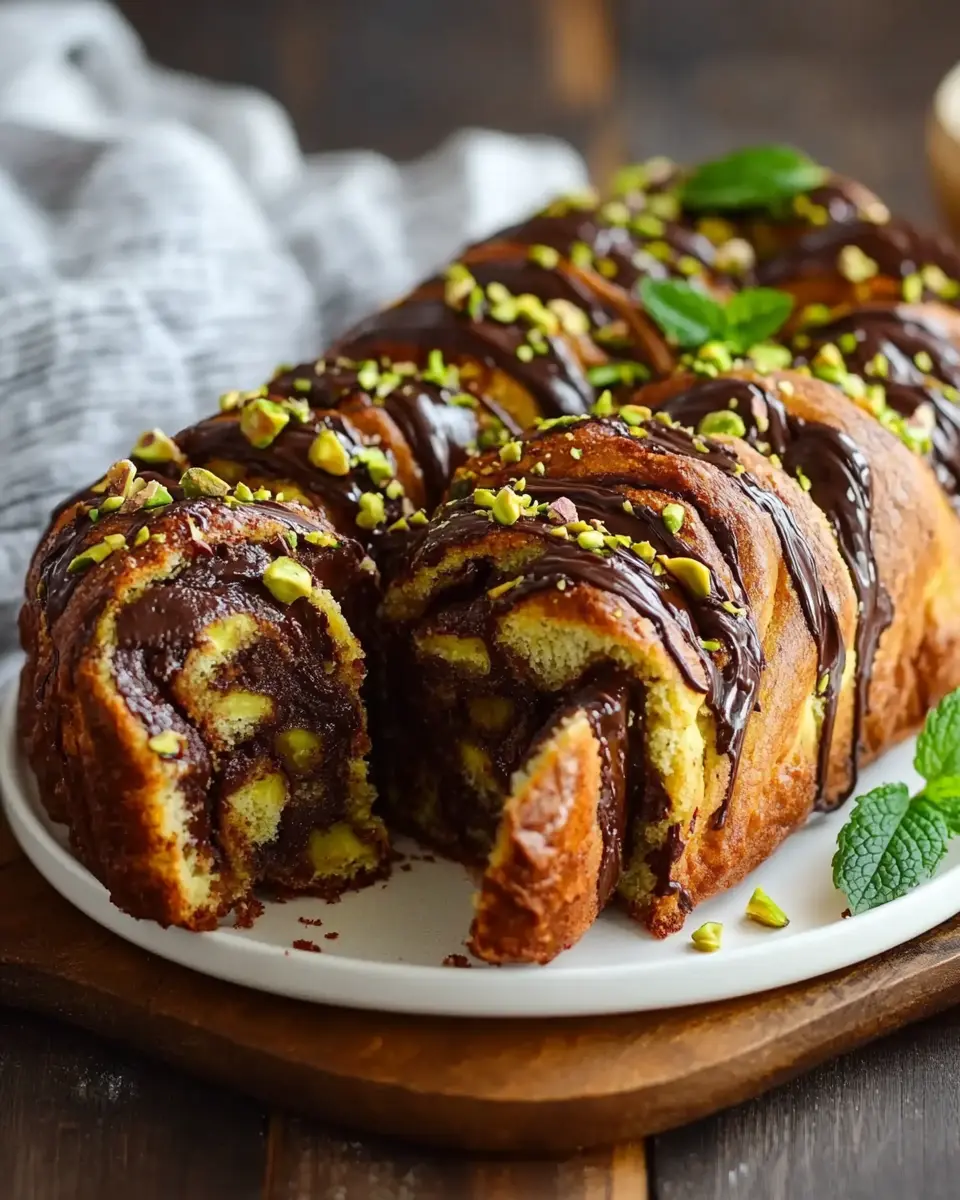 This Pistachio Chocolate Babka Pull-Apart combines rich chocolate and nutty pistachios in a soft, buttery dough, perfect for sharing.