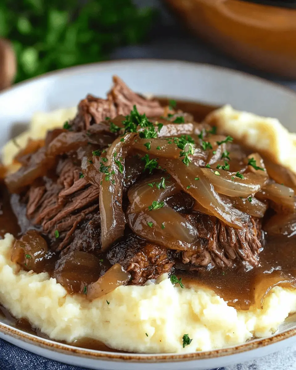 One of the best features of this pot roast is its versatility. Whether you’re serving it for a cozy family dinner or preparing it for a gathering with friends, it never fails to impress. The tender, juicy beef pairs perfectly with the sweet and savory onion gravy, making it a crowd-pleaser. Plus, the simplicity of the recipe means you can spend less time in the kitchen and more time enjoying the company of those you love.