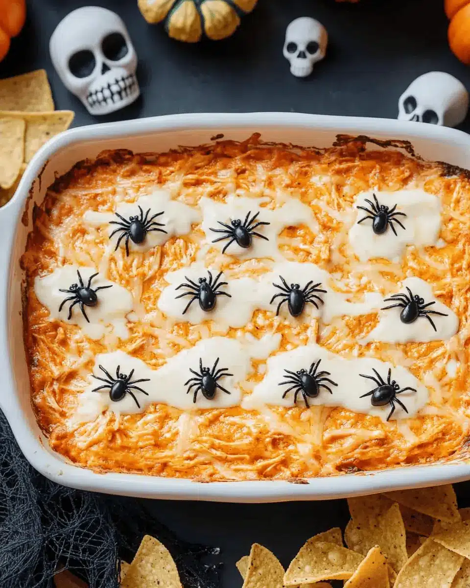 This spooky buffalo dip is perfect for Halloween parties and gatherings!